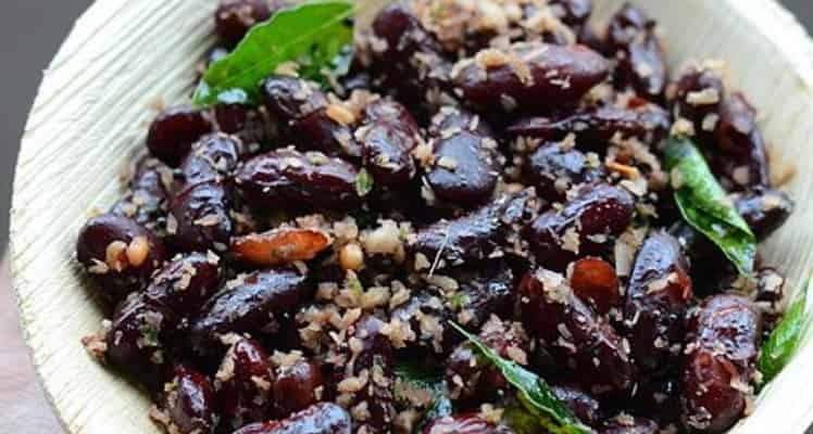 - Add the cooked kidney beans to the pan along with 1/4 cup of grated fresh coconut. Stir well to combine and let it simmer for a few minutes.