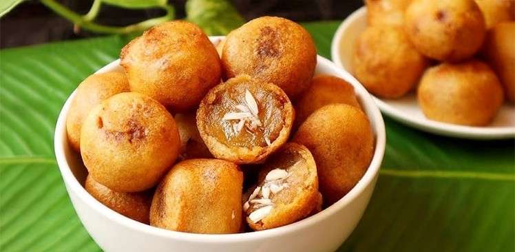 Unniyappam are small, round, deep-fried fritters made from rice flour, jaggery, coconut, and cardamom. Crispy on the outside and soft inside, these treats are a festive favorite, especially in Kerala. It is ideal as a snack, dessert, or prasadam during the festival.